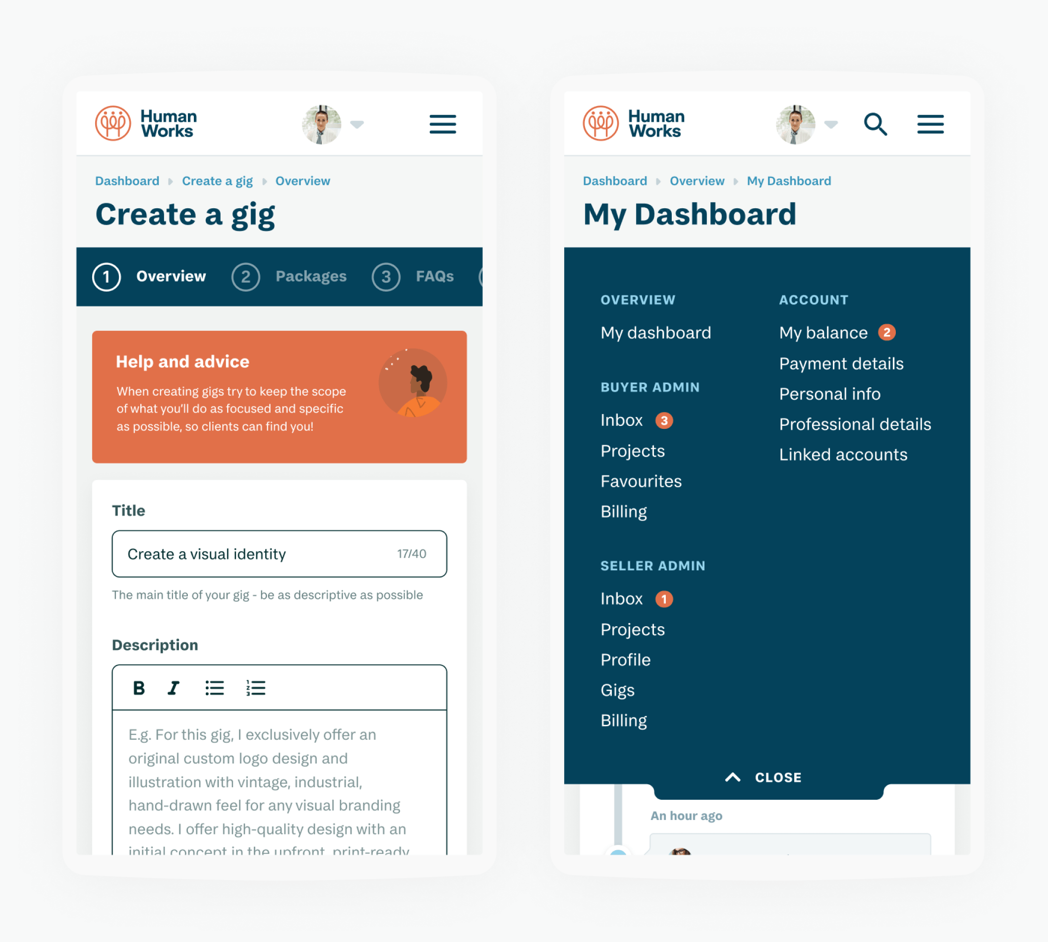 The HumanWorks platform is large and complex, but as per the key brand values I designed it to feel straightforward, warm, and purposeful.