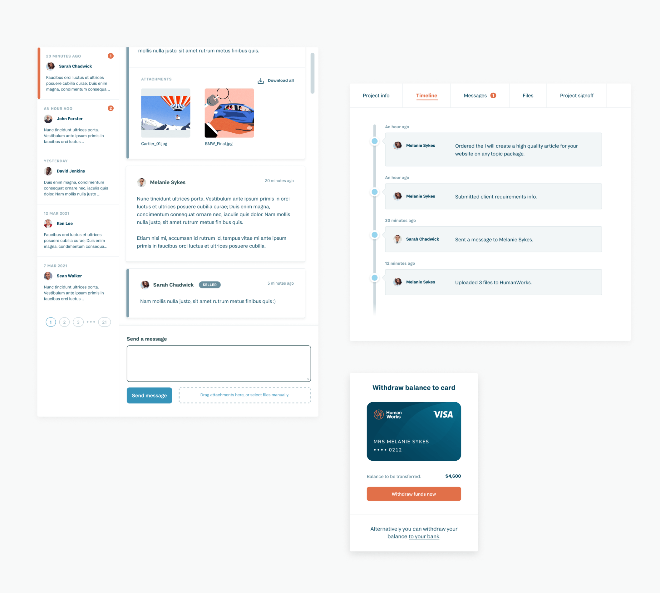 Whether the user is creating a new project or responding to client feedback I wanted the experience to feel unique to HumanWorks.